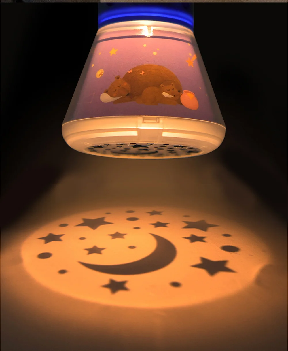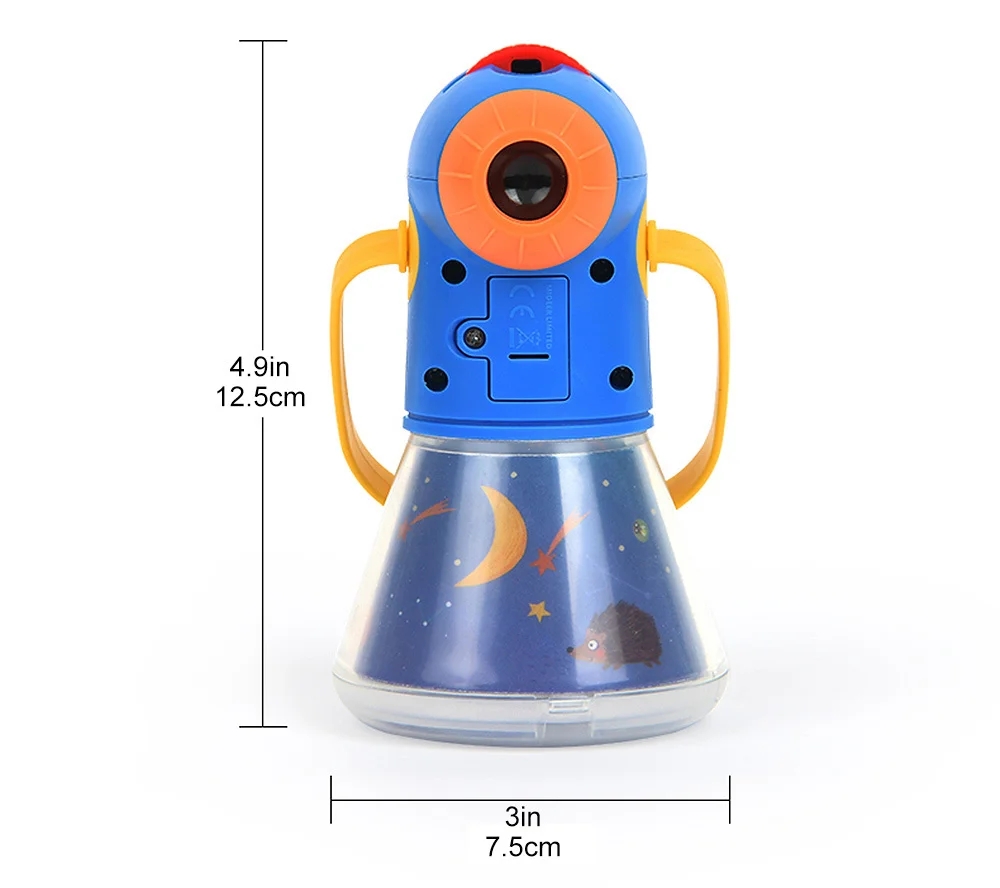 It adopts new optical components to improve projection technology for a larger and clearer image. Clear and vivid projection can easily stimulate kids’ interest. Projection distance: the farther the space, the more excellent imaging will be. A reasonable focal length projection is about 20-60 inches. This Story Projection Torch is portable and lightweight! Only erase the lights in the bedroom, turn the disc, playing like a child reading a picture book. Everyone can enjoy themselves before going to bed and taking the baby to a gentle sleep.